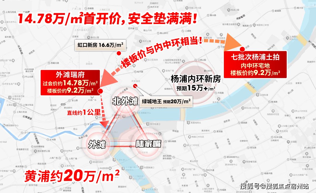 再直白点说:外滩、北外滩比外滩瑞府贵太多,虹口下游也比它高,就连内中环地价也追上了它,这样的价格安全垫,在内环难寻第二个。