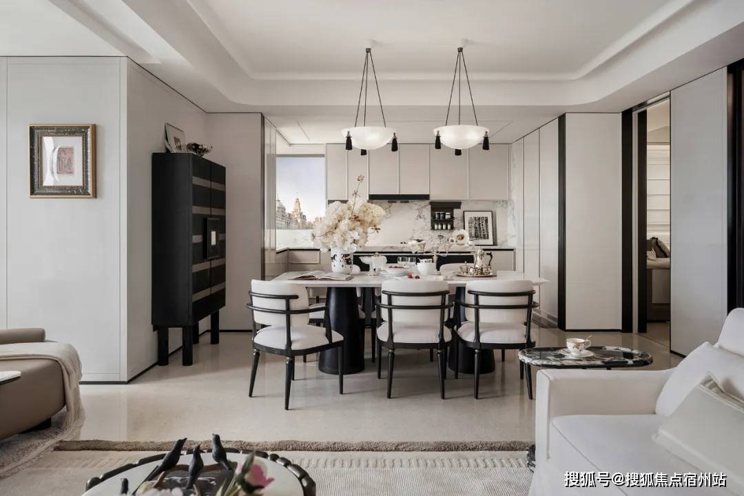 超大尺度的中西岛台 ,既符合中式烹饪的实用逻辑(预留足够操作台面),又能承载西式社交(朋友小聚时在岛台品酒聊天),让厨房从“单一做饭空间”变成“生活场景发生器”。