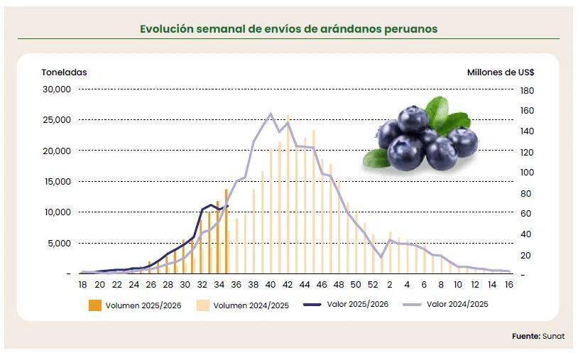 尽管出口量十分可观,但蓝莓的盈利能力持续承压。这种趋势曾在牛油果产业出现,如今正在蓝莓领域重演。物流瓶颈,尤其是卡亚俄港的拥堵,进一步影响运输时效和果实品质。