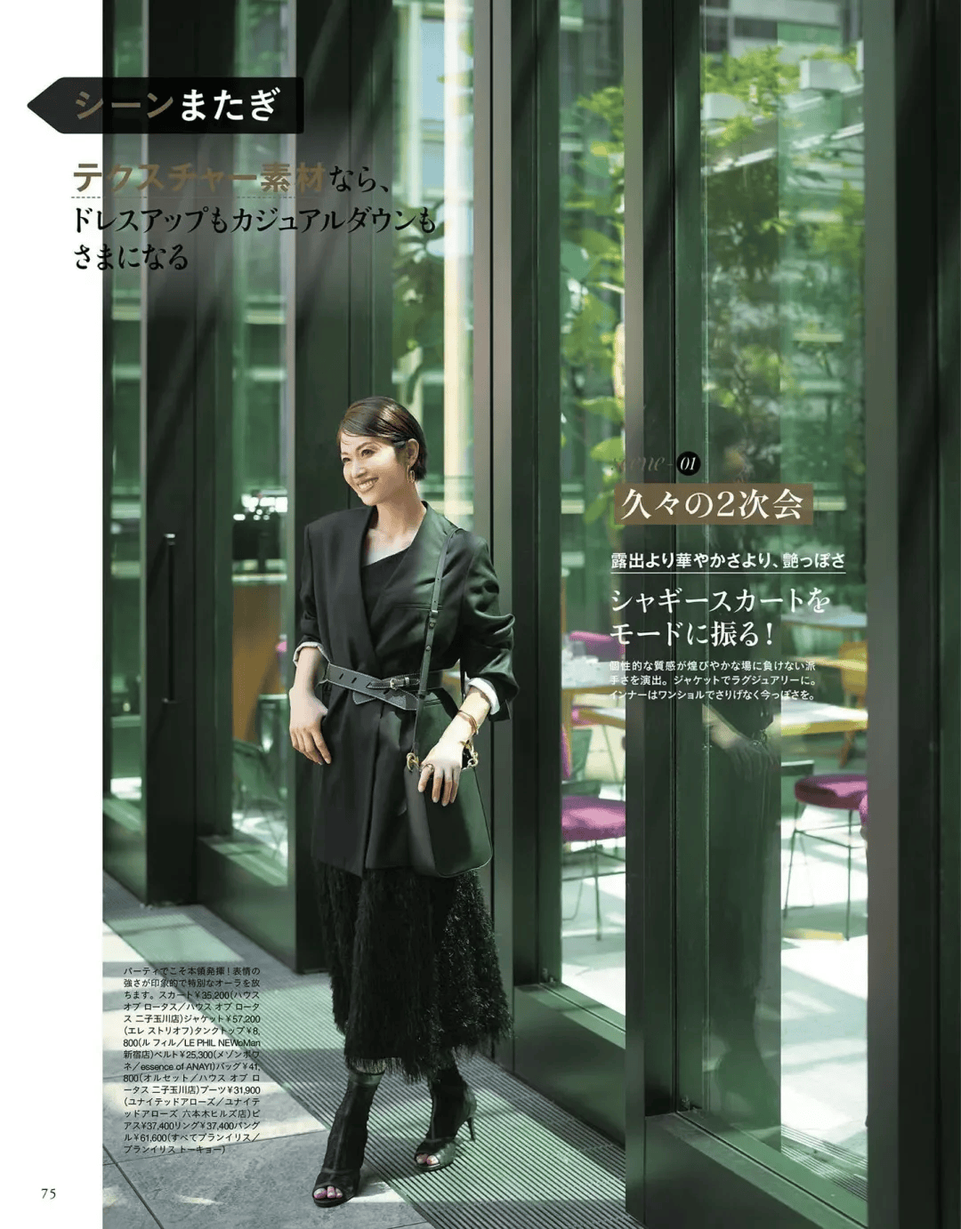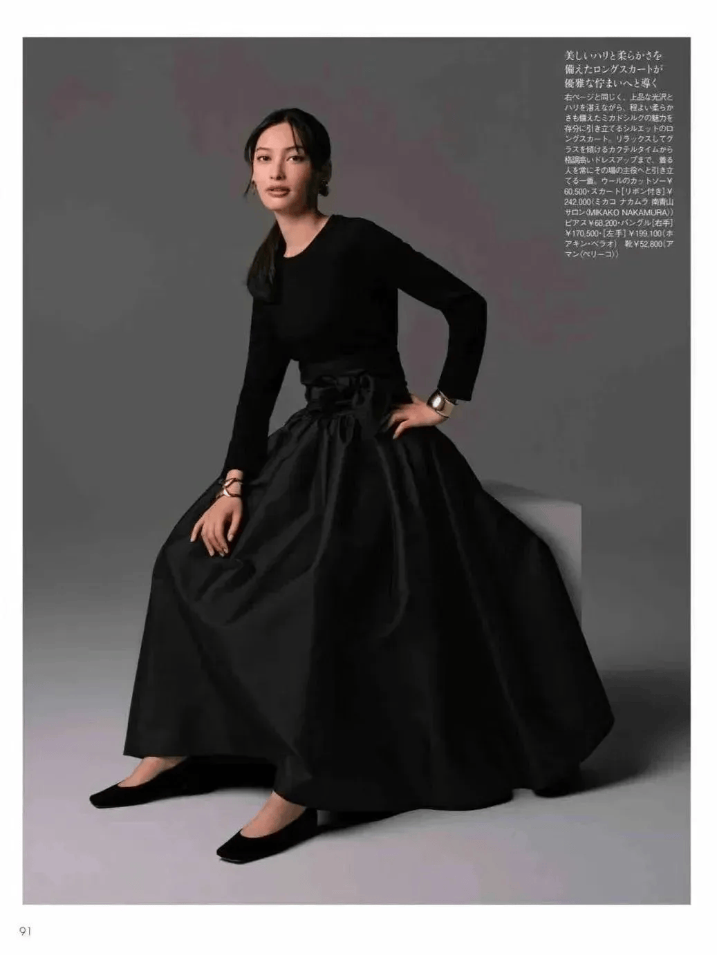 黑色针织毛衣,散发出独特的魅力气质,轻松穿出自由洒脱的风格,搭配一件黑色真丝半裙,恰到好处地为黑色带来温度与活力,穿出经典又高级的气场,系上金属腰带,游刃有余地穿梭在城市中,更是每一步都显得高挑又纤瘦。