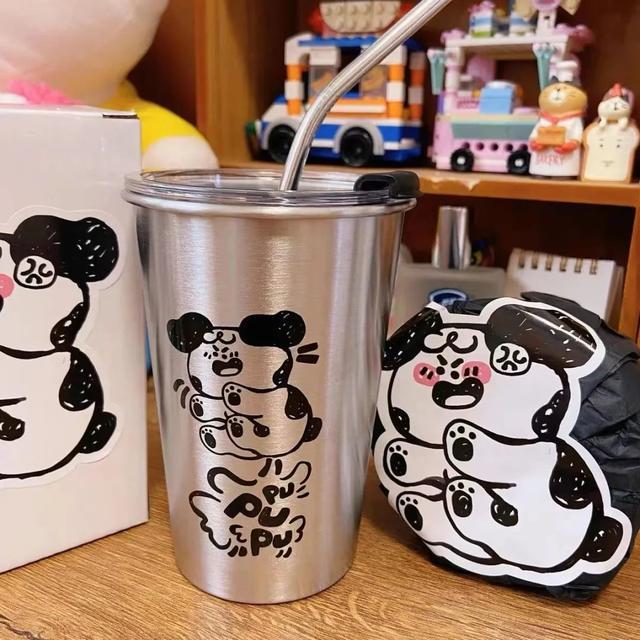 这个杯子就很有ins风的感觉,上面还有一个修狗的印花超可爱,这个是不锈钢的材质哦,用来喝可乐再合适不过了。